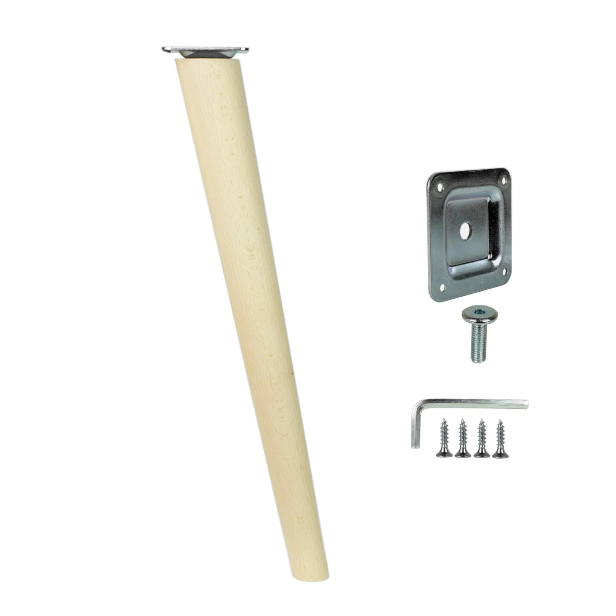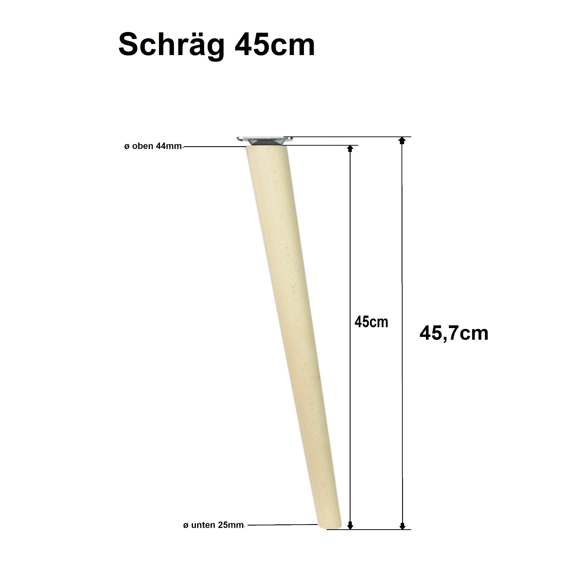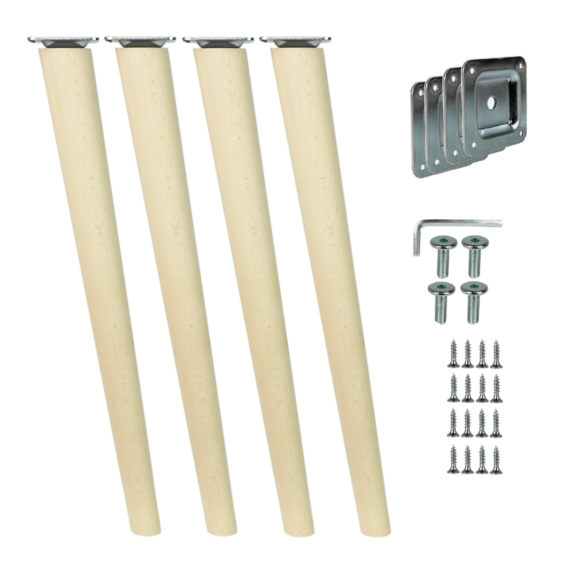 Möbelfüße Holz 45 cm – konisch, Massivholz Buche, inkl. Montageset