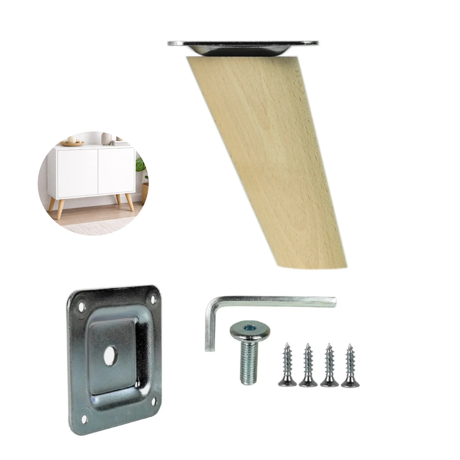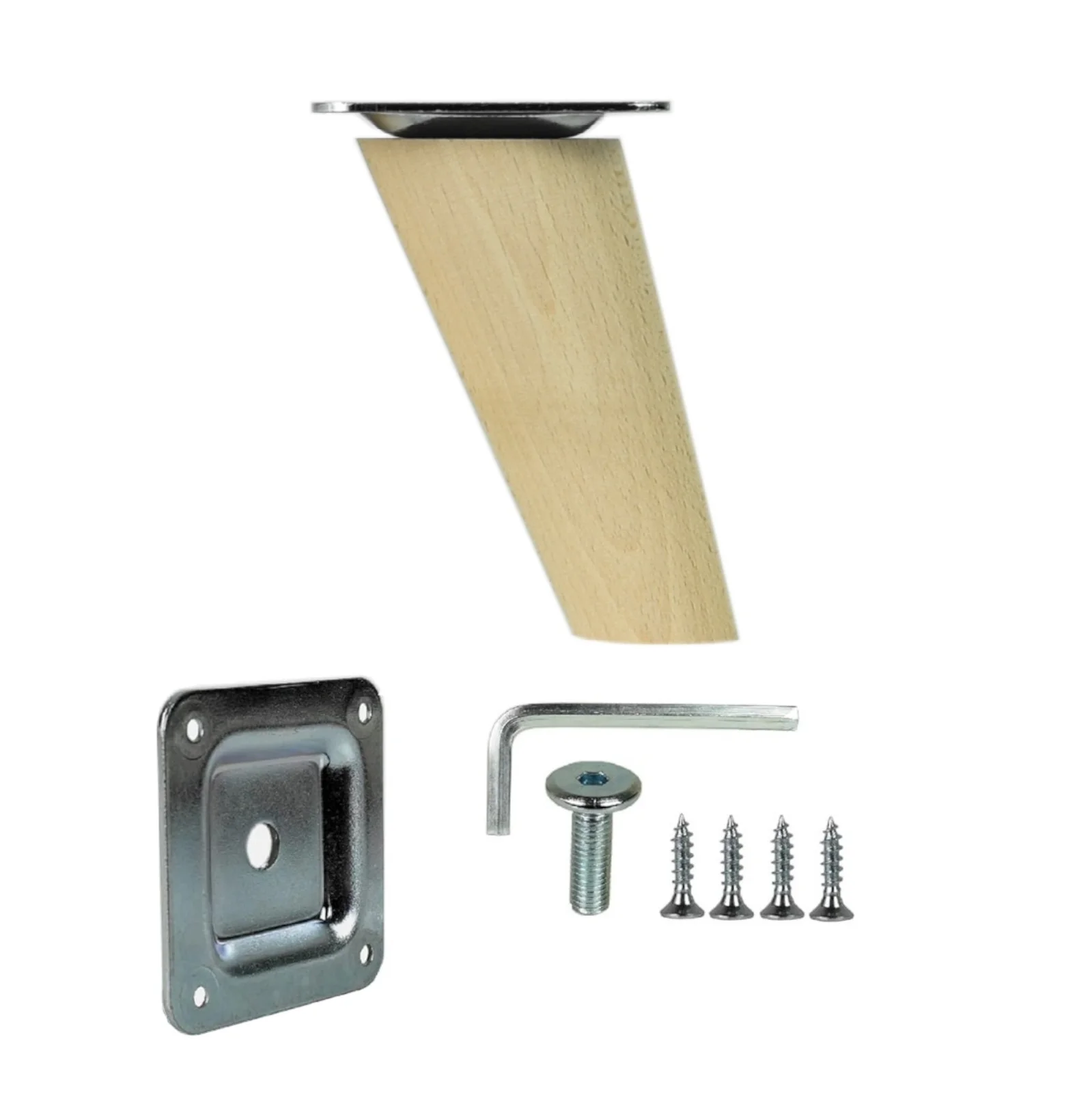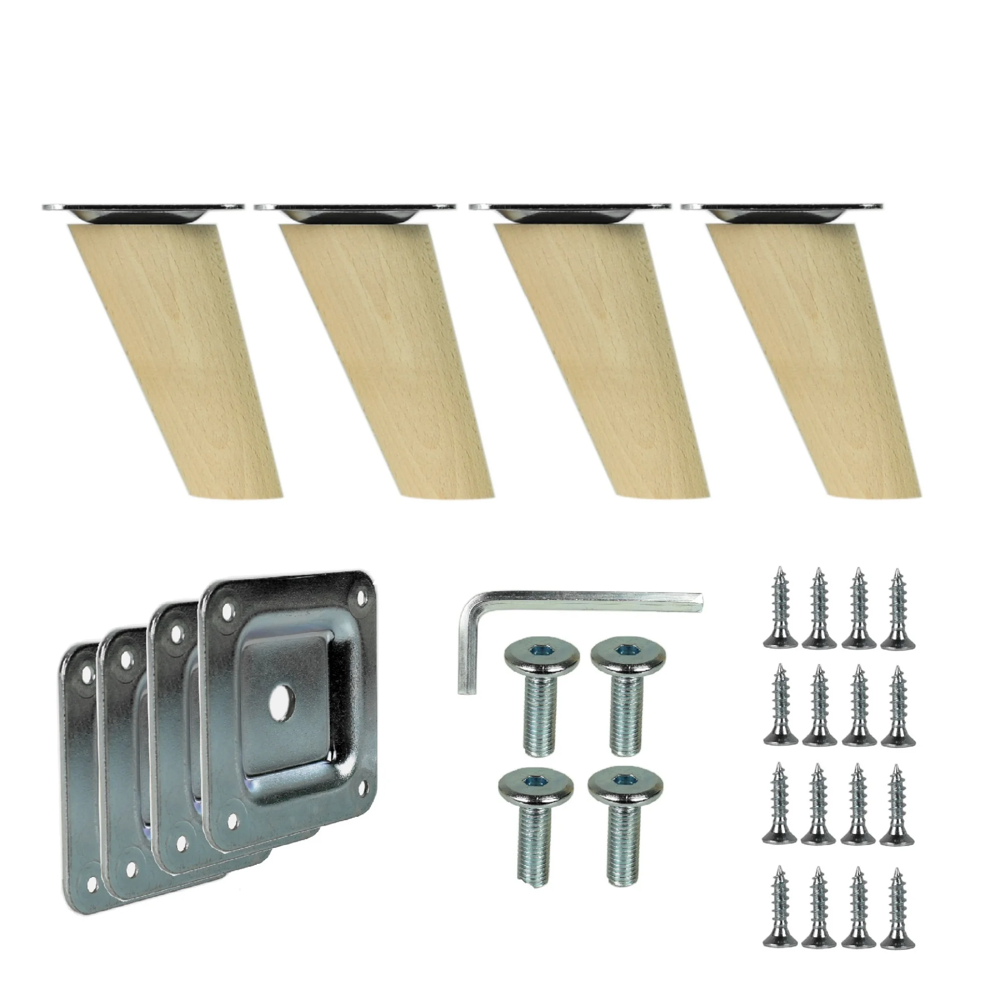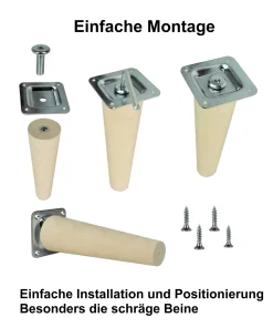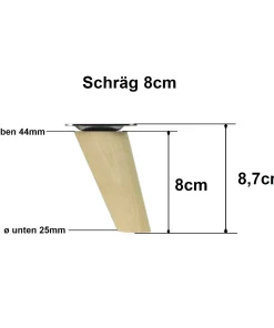 Möbelfuße Holz schräg 8 cm – konisch, Massivholz Buche, inkl. Montageset