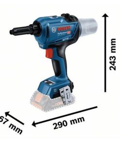 Akku-Nietpistole GRG 18V-16 C, Die GRG 18V-16 C Professional befestigt verschiedenste Blindnieten (3,0 bis 6,4 mm Durchmesser) mit einer konstanten Zugkraft von 16.000 N. Diese Nietpistole bietet zwei Betriebsarten: AUTO für einen automatischen Nietvorgang und MANUAL für eine individuelle Steuerung des Arbeitsablaufs. Die integrierte Bluetooth Connectivity erlaubt es dem Anwender, den Wartungsplan für sein Werkzeug über die Bosch Toolbox App individuell festzulegen und zu verfolgen. Die GRG 18V-16 C Professional ist ideal zum Verbinden von vorgebohrten Metallwerkstücken bei Klimaanlagen und Elektroinstallationen, Metallbau, Dach- und Fassadenmontagearbeiten, Autoreparaturen und vieles mehr. Kompatibel mit dem Bosch Professional 18V System und mit der markenübergreifenden AMPShare Akku Allianz. Lieferung inklusive 4 Mundstücke (3,0/3,2 mm, 4,0 mm, 4,8/5,0 mm, 6,4 mm), Montageschlüssel für einfache Mundstückwechsel, Aufhängeöse, Aufspanndornbehälter und Gürtelclip. Mit bürstenlosem Motor und Werkzeugstatusanzeige am User Interface. Karton