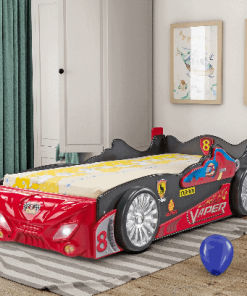 Der rote Sportwagen ist mit realistisch aussehenden Rädern, charaktergebenden Details und funktionierenden Frontlichtern aus LED-Dioden ausgestattet. Mit der Geschwindigkeit der schnellsten Sportwagenmodelle entführt das Autobett Viper jedes Kleinkind in eine traumhafte Fantasiewelt und garantiert einen ruhigen, wohltuenden Schlaf.