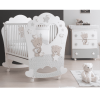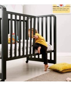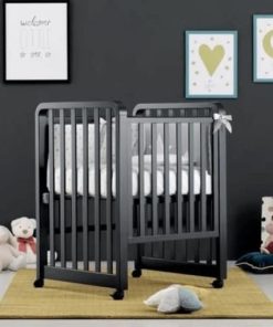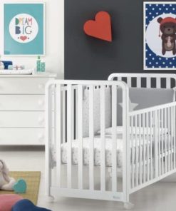 Mit einem modernen Design ist es die einzige Wiege mit einem absenkbaren Seitengitter, ausgestattet mit Rädern zum Bewegen, komplett mit Matratze und Stoßfängern für die ersten 3 Monate. Das Babybett Glam besteht aus 100% Kiefernholz