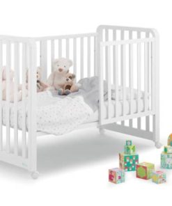 Sie können Ihr Kleines stillen und versorgen, ohne das Bett verlassen zu müssen, immer neben dem Elternbett, indem Sie einfach das Seitengitter entfernen. Das Seitengitter lässt sich nach oben und unten ziehen, und Sie können das Kinderbett auch leicht von Raum zu Raum bewegen, da es mit Rädern ausgestattet ist. Dein Kind nicht wird sich nie allein fühlen