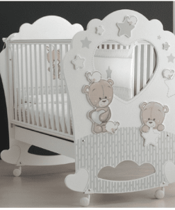 Das Babybett Love Me Oblo ist durch einen eleganten Stil charakterisiert und mit einem Bullauge verziert, es ist als Herzstück des Kinderzimmers gedacht. Das Herz und das Bärchen sind die niedlichen Hauptfiguren dieser Reihe.
