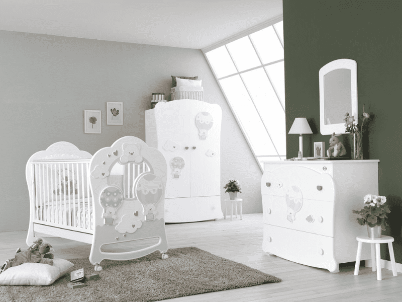 Das Babybett Oblo hat Strass Applikationen und mit einem grossen Bullauge am Kopfende wird das Kinderzimmer Ihres Kindes strahlender und eleganter machen.
