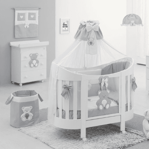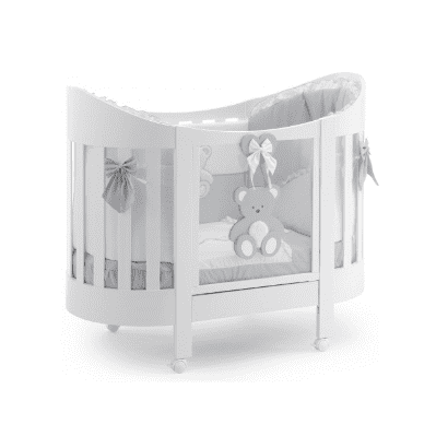 Das Babybett Plush aus Holz, ist durch einen eleganten Stil und Reliefverzierungen gekennzeichnet.