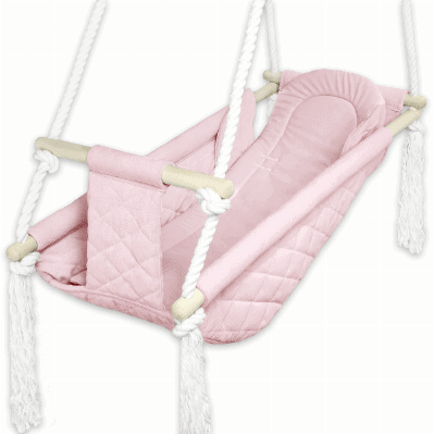 Babyschaukel – Eine einzigartige Babyschaukel, sicher und bequem für Ihr Kleinkind. Die Babyschaukel besteht aus starken, polierten Stäben und strapazierfähigen Baumwolle. Die Sitzfläche und die versteifte Einlage sind aus hochwertigsten Velvet-Stoffen gefertigt.