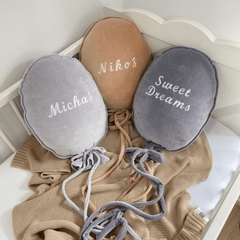 Ballonkissen aus Velours mit Stickerei ( nach Wunsch)