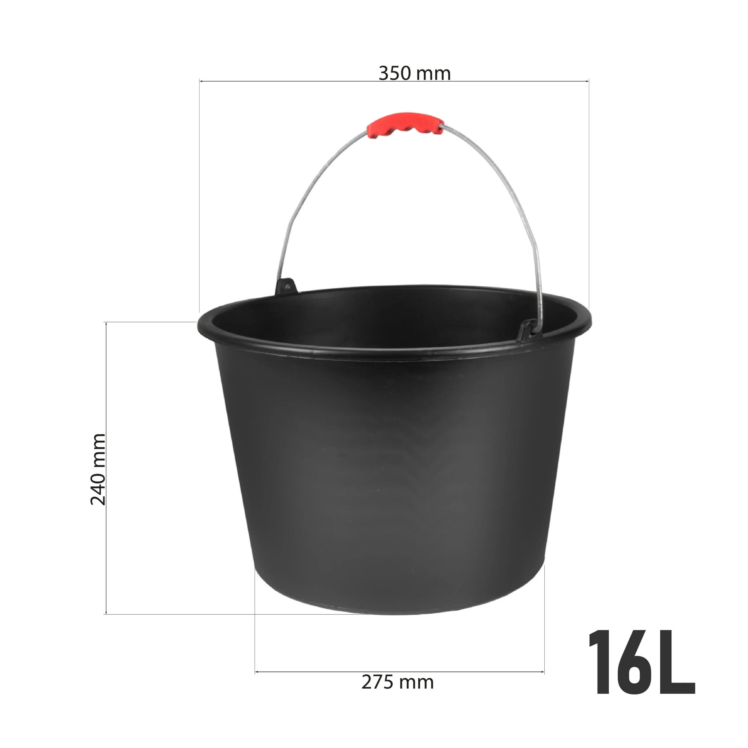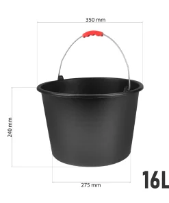 Baueimer 16 Liter – mit Skala & Metallbügel, roter Griff