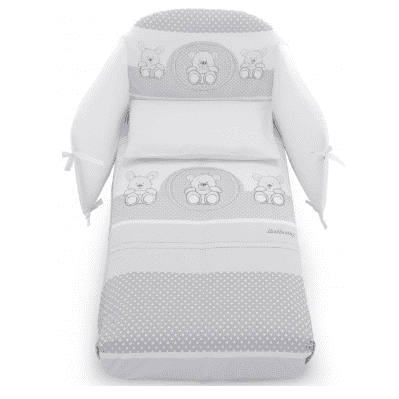 Abnehmbares pony Set Ballon aus Stoff in der Farbe weiss, bestehend aus 4 aufeinander abgestimmten Stücken mit den Stickereien der Linie Ballon um Ihrem Kind Ruhe zu schenken. Die Pony-Bettwäsche Ballon ist praktisch und nützlich. Es ist Hand- oder maschinenwaschbar.
