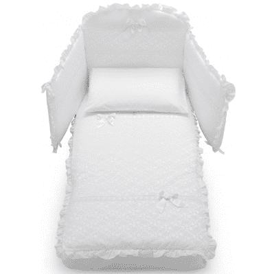 Abnehmbares marsupio-zip Set aus Stoff in der Farbe weiss oder elfenbein, bestehend aus 5 aufeinander abgestimmten Stücken mit den Stickereien der Linie Magnifique Lux um Ihrem Kind Ruhe zu schenken.
