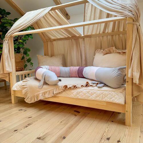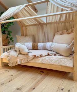 Der Schoner eignet sich auch als Bettschutz, Bettdekoration, als superlanges Kissen und als originelles Schlafkuscheltier 🙂