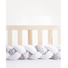 Die Bettschlange Grau-Rosa ist ein sehr weicher Bettschutz, dank dem das Kind ein Gefühl der Sicherheit und des Komforts hat und die Eltern sicher sein können, dass ihr Kind sicher ist. Das Geflecht kann auch als Sofadekoration für ältere Kinder und Jugendliche verwendet werden. Sehr solide verarbeitet mit einer Füllung aus flauschigen antiallergischen Silikonkugeln. Hergestellt aus 100% Baumwolle höchster Qualität mit einem Gewicht von 150 g. Dem Geflecht werden dekorative farbige Schnüre hinzugefügt, mit denen sie das Geflecht am Kinderbett befestigen, damit es sich beim Gebrauch nicht verheddert. Die Bettschlange Grau-Rosa ist 6 cm breit und 16 cm hoch.