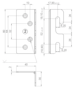 - Hakenbeschläge: 90 x 40 x 30 mm, Materialstärke 2 mm