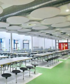 Die hohe Dichte der Akustikdecken und die Flexibilität des Polyesters ermöglichen den Einsatz in einer Vielzahl von Umgebungen, z. B. in Turnhallen, Schwimmbädern oder sogar im Freien. Das Material ist witterungsbeständig und daher ideal für den langfristigen Einsatz geeignet.