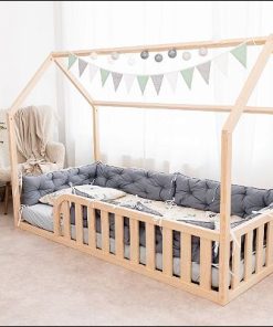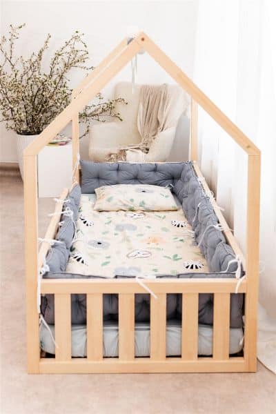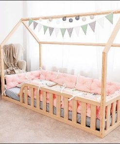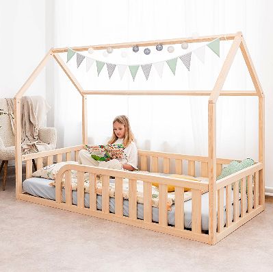 Bodenbett Haus – Sichere Schlafumgebung: Dieses Bett bietet mit Lattenrost und Schutzgittern einen sicheren Schlafplatz für Kleinkinder und verhindert so Stürze. Es eignet sich auch als Sicherheitsbett für Kinder mit besonderen Bedürfnissen. Das stabile Design ermöglicht es Eltern, beruhigt mit ihrem Kind zu schlafen und die Bindung sowie das Sicherheitsgefühl für beide zu fördern.
