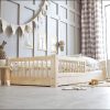 Bodenbett mit Tür ist ein klassisches Bett mit Geländer im skandinavischen Stil.