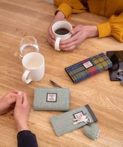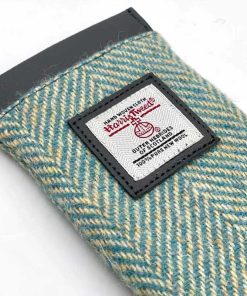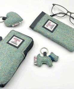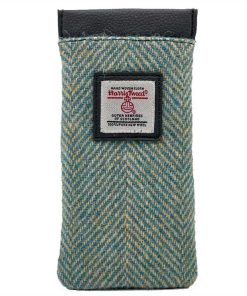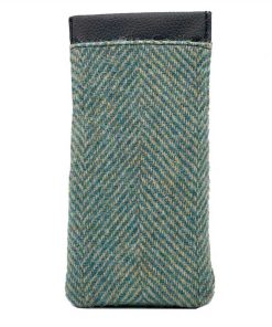 Brillenetui aus Harris Tweed in Türkis-Fischgrätmuster