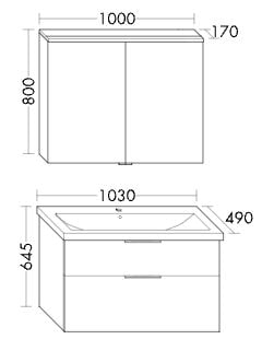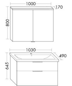 Komplett-Set Ausführung mit Keramikbecken und Spiegelschrank