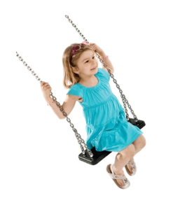 Diese Version der Doppelschaukel Öffentlich umfasst einen flachen Sitz und einen Babysitz, um Benutzern jeden Alters Spaß zu bieten.