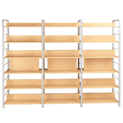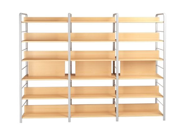 Doppelseitiges Bücherregal – Dieses hochwertige doppelseitige Bücherregal aus stabilem Metall und buchefarbener Spanplatte bietet eine durchdachte Lösung zur Aufbewahrung und Präsentation von Büchern und Unterrichtsmaterialien. Mit 36 großzügigen Fachböden auf beiden Seiten ist es ideal für Schulen, Kitas, Bibliotheken oder Bildungseinrichtungen geeignet.