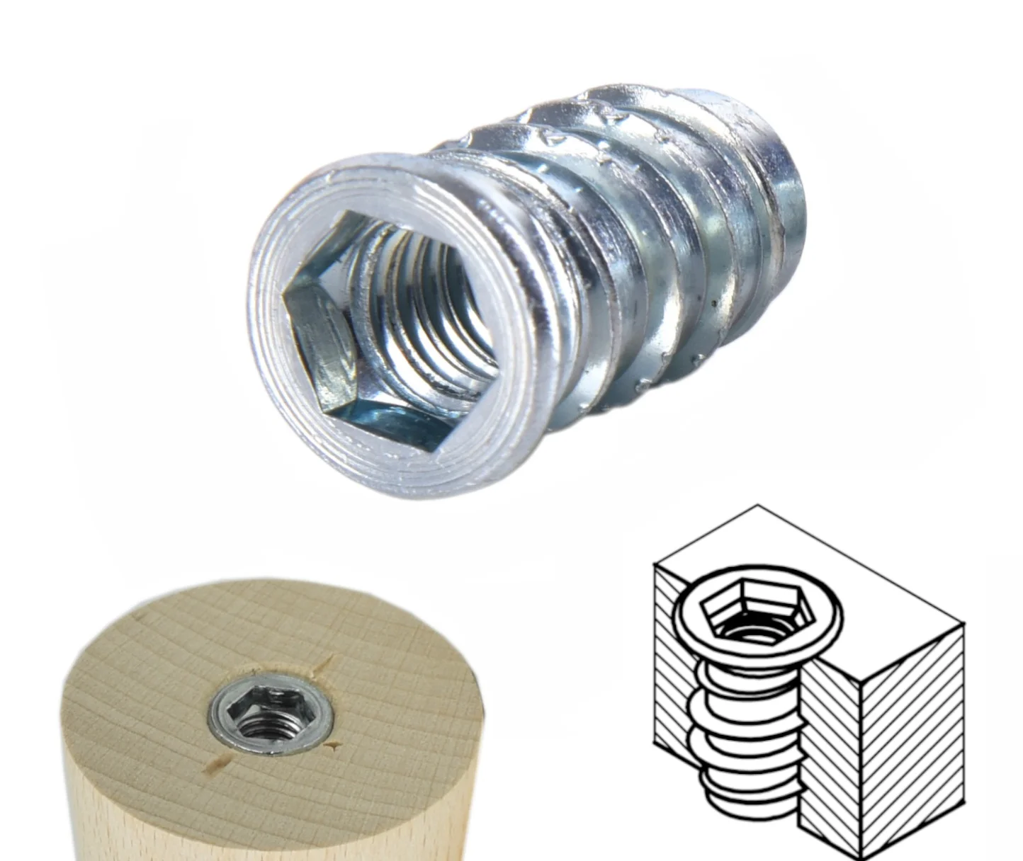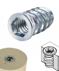 Die Einschraubmuffe Stahl verzinkt aus verzinktem Stahl bieten eine hochfeste, formstabile Verbindung in Holz.