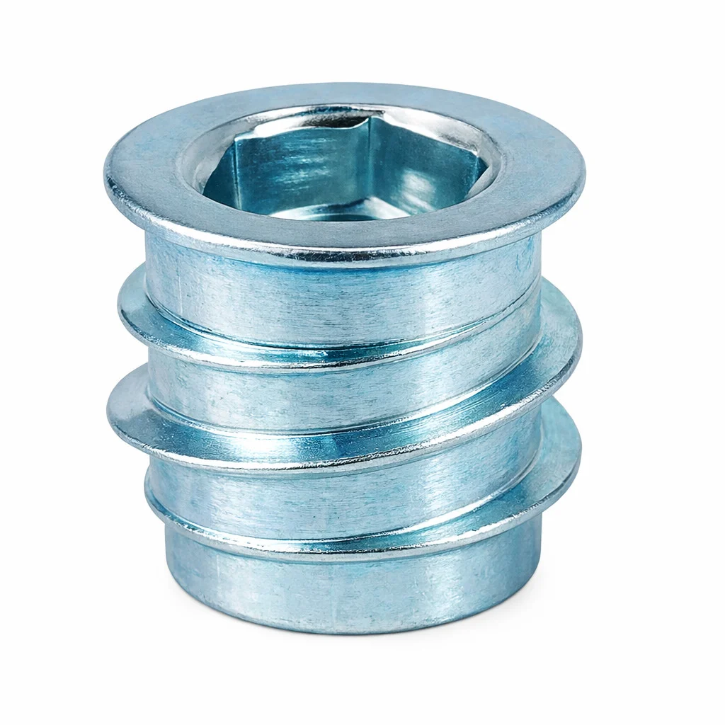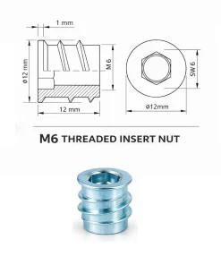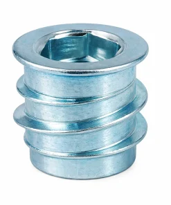 Die Einschraubmutter M6 12×12 verzinkt eignet sich für stabile, lösbare Verbindungen in Holz, MDF und Spanplatten.