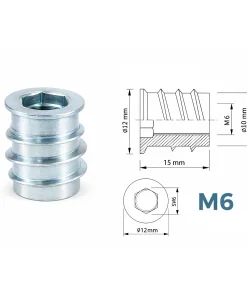 Einschraubmutter M6x15 verzinkt – Innensechskant (10 Stück)