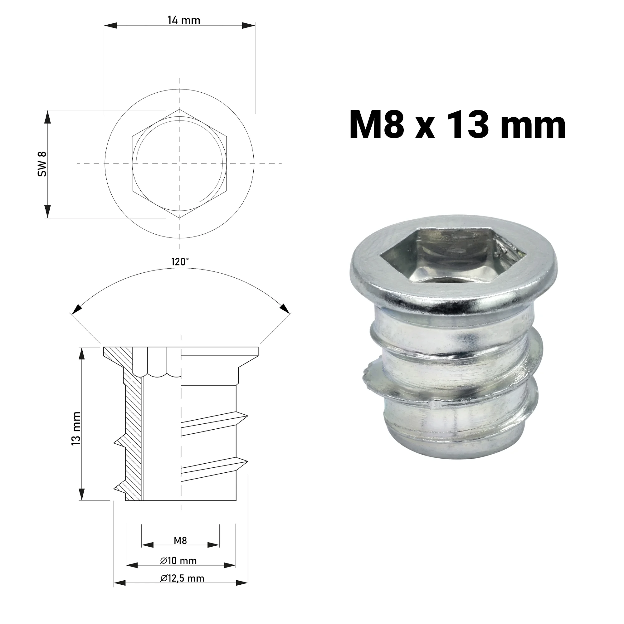 Einschraubmutter M8 x 13 mm – verzinkter Stahleinsatz für Holz & Möbelbau