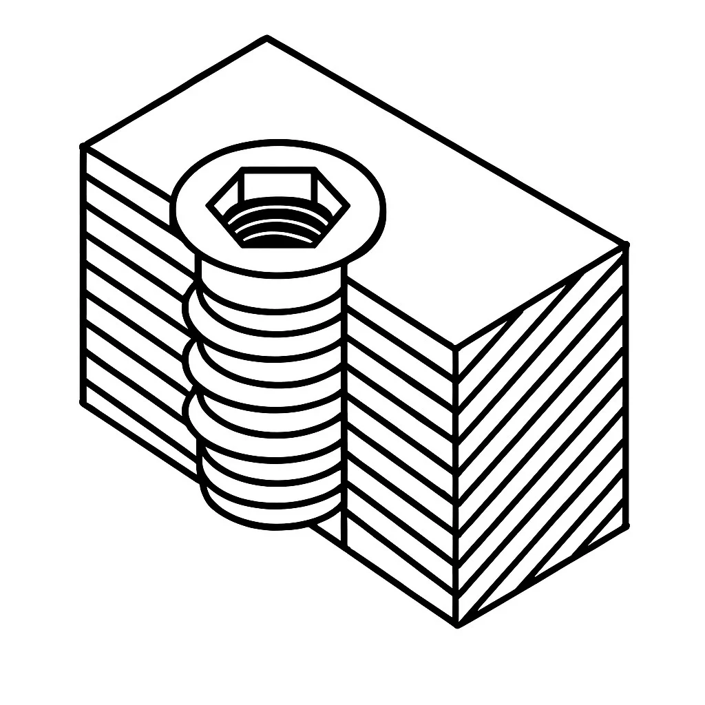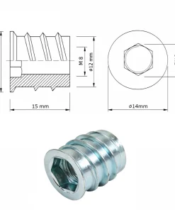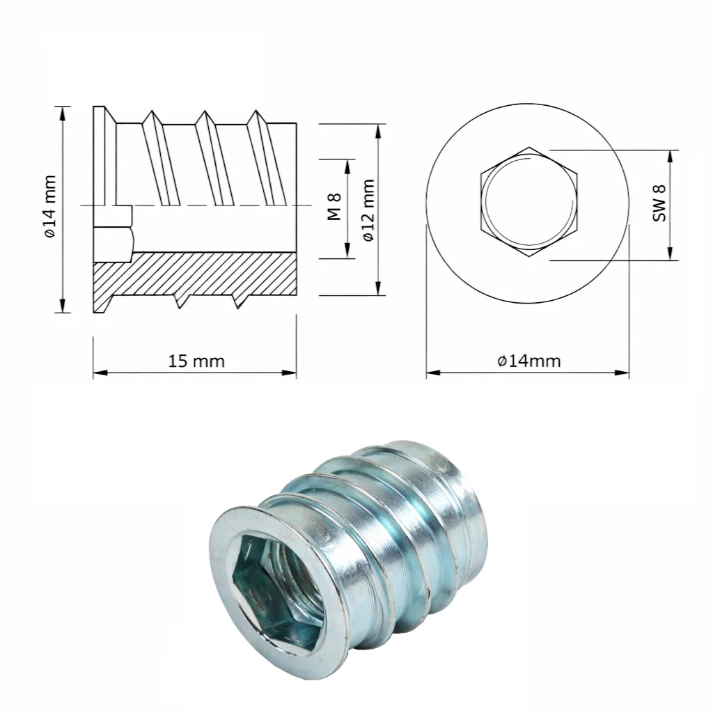 Die Einschraubmutter M8x15 eignet sich für stabile und lösbare Verbindungen in Holz, MDF und Spanplatten.