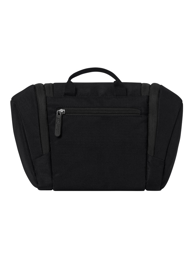 Hochwertiges Ripstop-Material verhindert Aufreißen der Tasche; Edles All-Black Design für den stilvollen Auftritt auf jeder Reise; Geräumiges Hauptfach; Separate Mesh-Innenfächer; Zwei Seitentaschen mit Reißverschluss; Reißverschlussfach auf der Rückseite; Praktische Schlaufe zum Aufhängen; Maße (L x B x H) ca. 25x30x10 cm; Volumen ca. 5 Liter