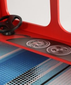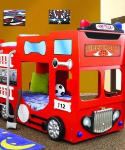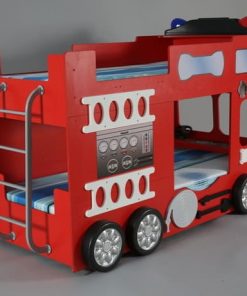 Ein einzigartiges Etagenbett für Kinder in Form eines Feuerwehrwagens mit LED-Beleuchtung. Das Bett besteht aus laminiertem MDF. Das Bett wird mit zwei Matratzen verkauft. Die MATRATZEN sind aus hartem, flauschigem Vliesstoff hergestellt. Maße der Matratzen – 180 cm x 90cm, 10cm dick. Matratzenbezug in Kindermustern mit Reissverschluss zum waschen.