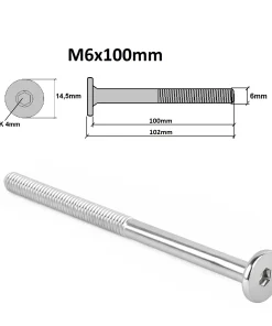 Flachkopfschrauben M6 x 100 mm mit metrischem Gewinde, flachem Kopf und Innensechskant.