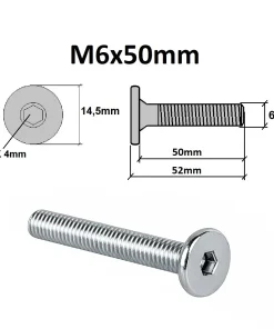 Flachkopfschrauben M6 x 50 mm mit metrischem Gewinde, flachem Kopf und Innensechskant.