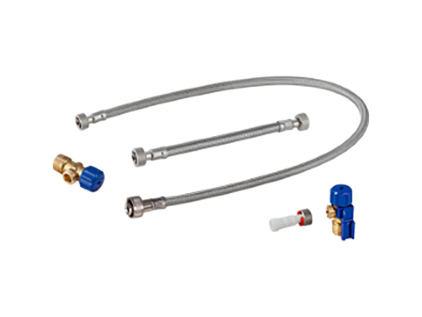 Wasseranschlussset unten, für Geberit Monolith Sanitärmodul für WC, 101 cm Einsatzbereich: * Für Geberit Monolith Sanitärmodule für WC, 101 cm * Für verdeckten Wasseranschluss Lieferumfang: * 2 Eckventile 1/2″ * Befestigungsclip * 2 Panzerschläuche 3/8″ * Passstück
