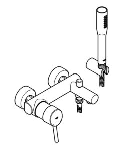 Einhand-Wannenbatterie, 1/2“ Wandmontage Bedienungshebel aus Metall GROHE SilkMove 46 mm Keramik-Kartusche GROHE StarLight Oberfläche variabel einstellbare Mengenbegrenzung automatische Umstellung: Wanne/Brause Mousseur integrierter Rückflussverhinderer im Brauseabgang 1/2“ S-Anschlüsse Eigensicher gegen Rückfließen Armaturengruppe I nach DIN 4109 mit Brausegarnitur bestehend aus: Euphoria Cosmopolitan Handbrause (27 400) Wandbrausehalter (27 056) Relexaflex-Brauseschlauch 1.500 mm (28 151)