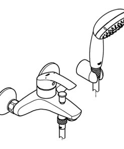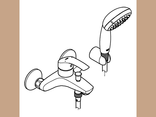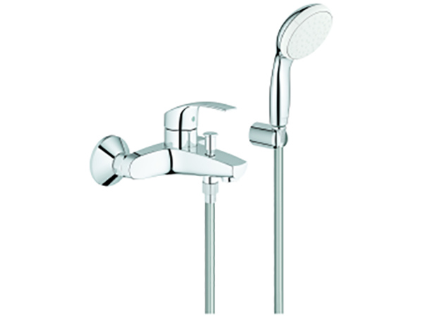 Eurosmart Einhand-Wannenbatterie, 1/2“ Wandmontage Bedienungshebel aus Metall GROHE SilkMove 35 mm Keramik-Kartusche mit Temperaturbegrenzer GROHE StarLight Oberfläche variabel einstellbare Mengenbegrenzung automatische Umstellung: Wanne/Brause Mousseur integrierter Rückflussverhinderer im Brauseabgang 1/2“ S-Anschlüsse Eigensicher gegen Rückfließen mit Brausegarnitur Handbrause Tempesta 100, 1 Strahlart, 9,5 l/min (27 923) Wandbrausehalter (28 605) Relexaflex-Brauseschlauch 1.500 mm (28 151) Handbrausehalter (28 605) Relexaflex-Brauseschlauch 1.500 mm (28 151)