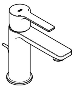 Einhand-Waschtischbatterie, 1/2“ XS-Size Einlochmontage Bedienungshebel aus Metall GROHE SilkMove 28 mm Keramik-Kartusche mit Temperaturbegrenzer GROHE StarLight Oberfläche GROHE EcoJoy SpeedClean Mousseur 5,7 l/min GROHE QuickFix Plus Schnellbefestigungssystem Zugstangen-Ablaufgarnitur 1 1/4“ flexible Anschlussschläuche