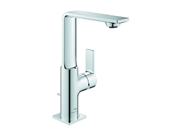 Einhand-Waschtischbatterie, 1/2“ L-Size Einlochmontage GROHE SilkMove 28 mm Keramikkartusche GROHE StarLight Oberfläche GROHE EcoJoy 6,0 l/min. Durchflussbegrenzer Schnell-Montage-System Auslauf mit Mousseur Zugstangen-Ablaufgarnitur 1 1/4“ flexible Anschlussschläuche