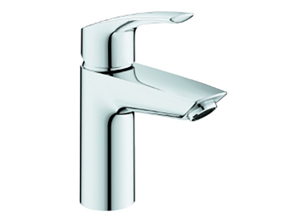 Eurosmart Einhand-Waschtischbatterie, DN 15 M-Size Einlochmontage offener Metall-Hebelgriff GROHE SilkMove 28 mm Keramikkartusche variabel einstellbare Mengenbegrenzung mit Temperaturbegrenzer GROHE StarLight Oberfläche GROHE EcoJoy 5,7 l/min Mousseur GROHE Zero getrennte innenliegende Wasserwege kein Kontakt mit Blei oder Nickel GROHE FastFixation Schnellbefestigungssystem glatter Körper mit Push-open Ablaufgarnitur 1 1/4″ flexible Anschlussschläuche