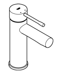 Essence Einhand-Waschtischbatterie, 1/2“ S-Size Einlochmontage Bedienungshebel aus Metall GROHE SilkMove 28 mm Keramik-Kartusche mit Temperaturbegrenzer GROHE StarLight Oberfläche GROHE EcoJoy Mousseur 5,7 l/min GROHE QuickFix Plus Schnellbefestigungssystem glatter Körper flexible Anschlussschläuche Mindestdruck 1,0 bar