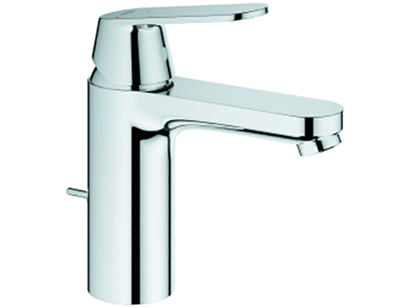 Eurosmart Cosmopolitan Einhand-Waschtischbatterie, 1/2“ M-Size Einlochmontage, Bedienungshebel aus Metall GROHE SilkMove ES 35 mm Kartusche mit Energie-Spar-Funktion durch Mittelstellung kalt variabel einstellbare Mengenbegrenzung einstellbare Mindestmenge ca. 2,5 l/min GROHE StarLight Oberfläche Temperaturbegrenzer GROHE EcoJoy Mousseur 5,7 l/min GROHE QuickFix Schnellbefestigungssystem mit Zentrierhilfe Zugstangen-Ablaufgarnitur 1 1/4“ flexible Anschlussschläuche Mindestdruck 1,0 bar