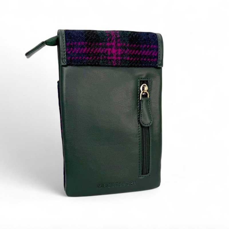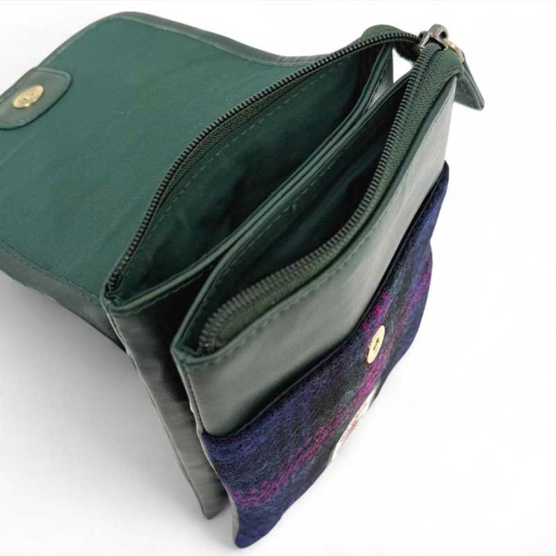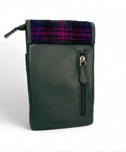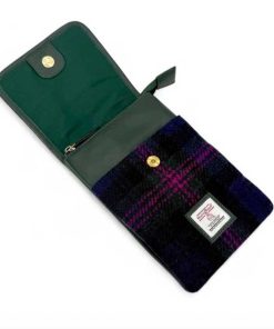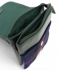 Die Tasche verfügt über zwei Innentaschen mit Reißverschluss. Zusätzlich gibt es ein offenes Fach auf der Vorderseite (unter der Klappe) für Gegenstände, die Sie schnell griffbereit haben möchten. Auf der Rückseite befindet sich außerdem ein Reißverschlussfach. Sie können unsere Harris Tweed Mini Bag mit dem vollständig verstellbaren Schulterriemen über der Schulter oder quer über dem Körper tragen und so die Hände frei haben.