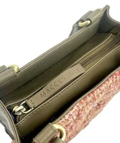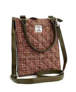 Die Harris-Tweed-Tasche verfügt über eine Reißverschlusstasche auf der Rückseite, ein offenes Fach und eine Innentasche mit Reißverschluss.