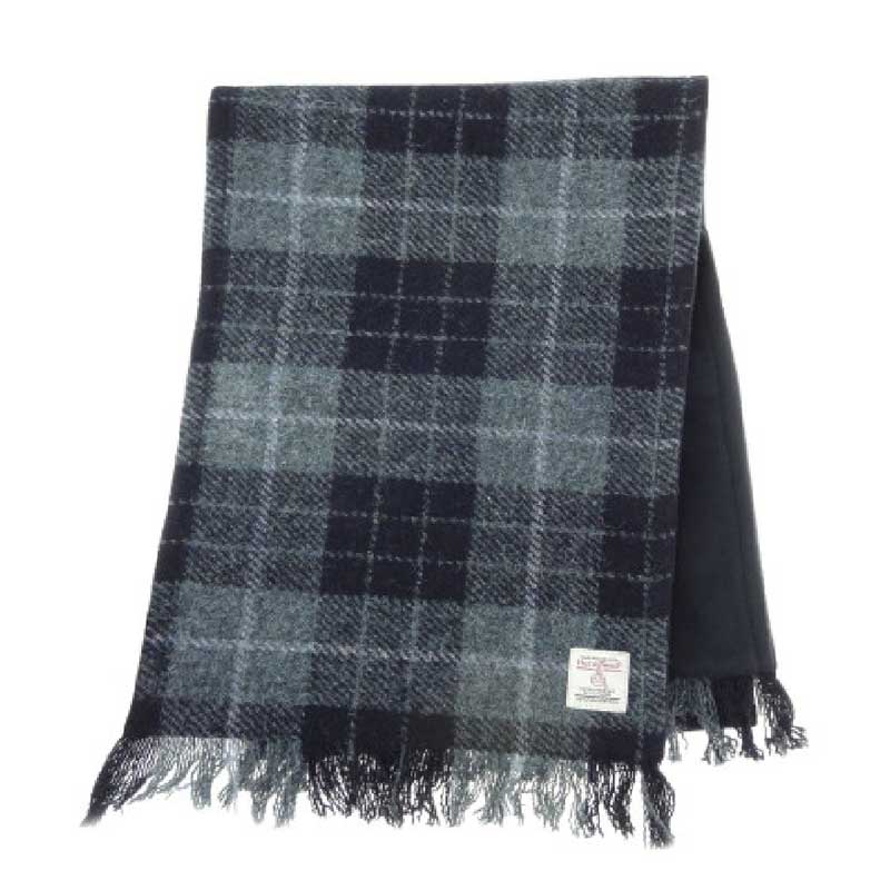 Harris Tweed Scarf in Grey Black Tartan