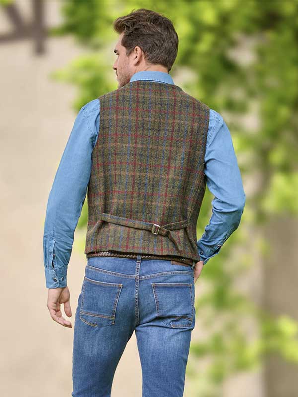 Die sportliche Harris Tweed Weste in den typischen Farben der schottischen Hebriden aus reiner Schafswolle. Harris Tweed ist sportlich, unverwüstlich und ursprünglich in Schottland handgewebt. Ein „Muss“ für Herren.