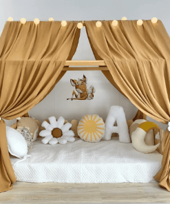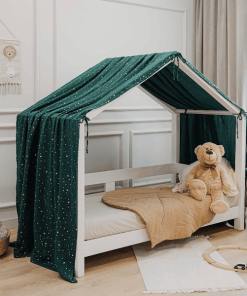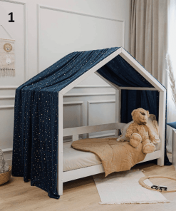 Hausbett Himmel – wie schön ist es ein Hausbett zu dekorieren, da kommt der Hausbett Himmel genau richtig. Er hilft Kindern sich sicher und behütet zu fühlen.