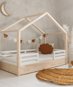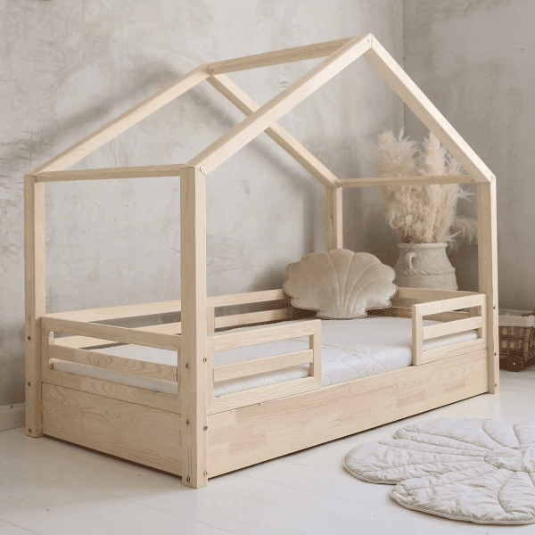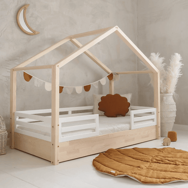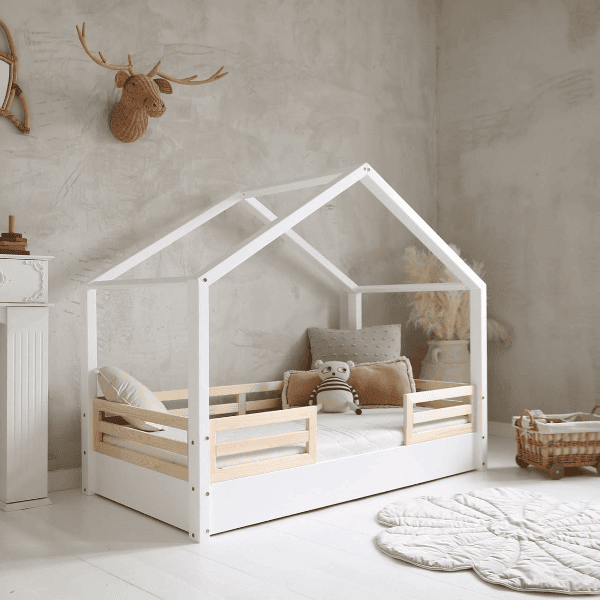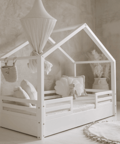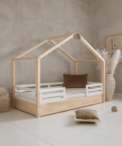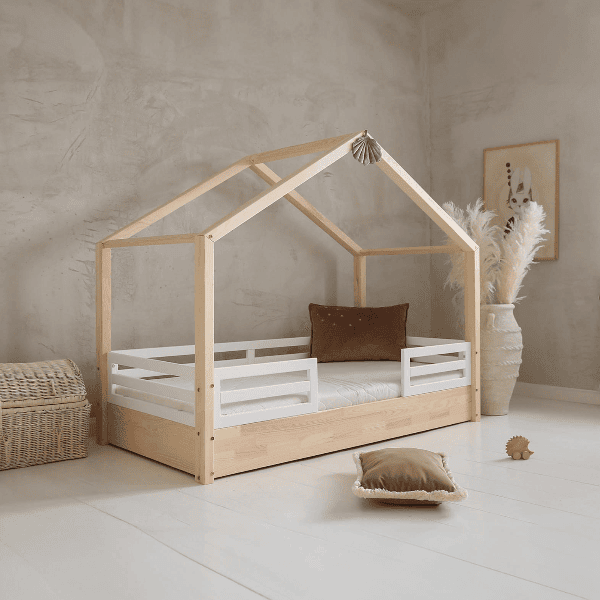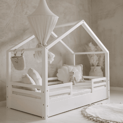 Hausbett New Fella – ist ein wunderschön designtes Hausbett in skandinavischem Design. Ihre Kinder können in diesem Montessoribett ihre Keativität entfalten und haben ihr eigenes Reich.