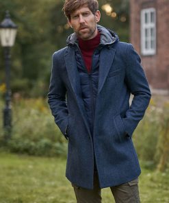 Der Herren-Kurzmantel ”Flynston” aus hochwertigem Woll-Kaschmir-Tweed mit wärmendem Extra: ein Westeneinsatz mit Kapuze zum Austrennen. Der Kurzmantel für Herren lässt sich lässig zur Jeans kombinieren, oder – ohne Westeneinsatz und Kapuze – elegant zum Anzug. Die bequemen Schubtaschen und der kurze Rückenschlitz sorgen für optimalen Tragekomfort. Der Kurzmantel für Herren ist besonders warm durch die zusätzliche Wattierung in Rumpf und Ärmeln, der Kapuzeneinsatz ist aus wattiertem Nylonmaterial und wohlig angenehmem Baumwolljerseyfutter. Ein moderner Allrounder in Premium-Qualität, der sich durch Funktionalität und Liebe zum Detail auszeichnet.