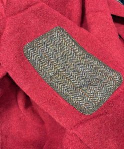Herren Strickpullover “Jack“ In Red Dahlia Mit Harris Tweed Applikationen.