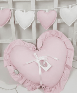 Herzkissen mit Rüschen wird ein Hingucker in jedem Kinderzimmer und ist sehr beliebt. Herzkissen mit Rüschen ist absolut sicher für Babys. Es hat keinen Reißverschluss und keine Federn. Die Kissenfüllung ist antiallergisch. Ideal zur Dekoration, ein perfektes Geschenk für die Kleinsten.